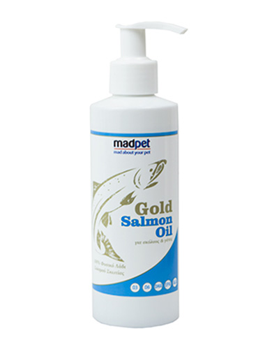100% Φυσικό Λάδι Σολομού της Madpet που αναμιγνύεται εύκολα με το γεύμα του ζώου.