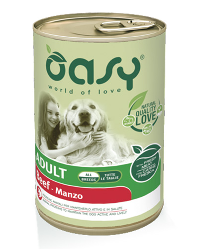 Κονσέρβα σκύλου με μοσχάρι. από την Oasy. Πατέ, πλήρης τροφή για ενήλικα σκυλιά όλων των φυλών.