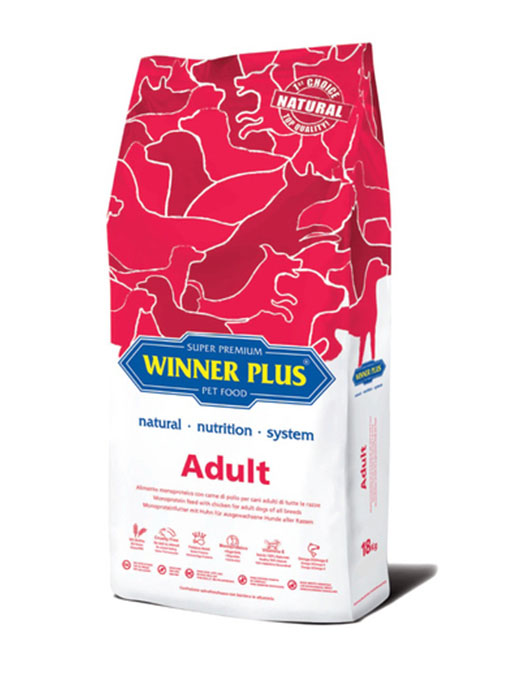Η Winner Plus Adult είναι μια πλήρης μονοπρωτεϊνική τροφή σχεδιασμένη για ενήλικα και δραστήρια σκυλιά, παρασκευασμένη με κοτόπουλο εξαιρετικής ποιότητας, προσεχτικά επεξεργασμένη όπως γίνεται με την ποιότητα των τροφίμων που προορίζονται για ανθρώπους και με υψηλή περιεκτικότητα σε λιπαρά ως πηγή ενέργειας τη στιγμή που τη χρειάζεται.