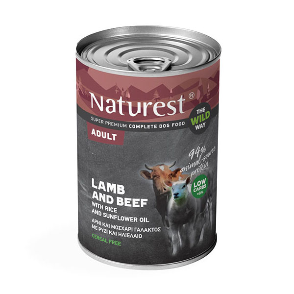 Κονσέρβα με μοσχάρι γάλακτος και αρνί με ρύζι και ηλιέλαιο από την Naturest.